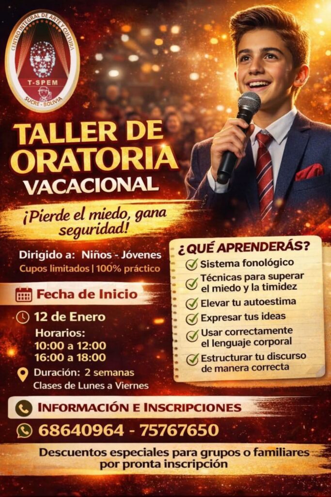 Este lunes 12 arrancamos nuestro Taller de Oratoria en SUCRE 🎤